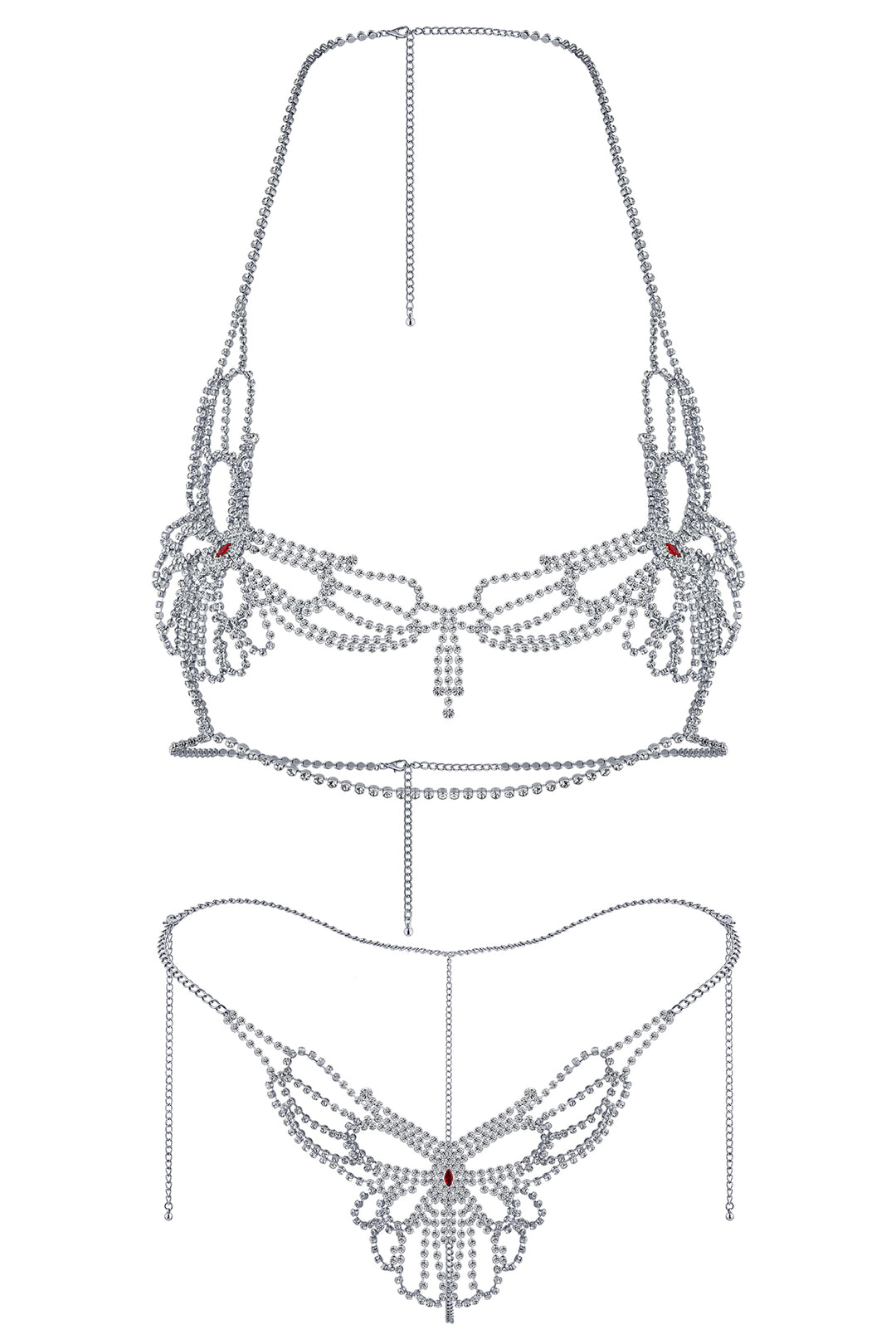 Combineer de Reverie Rhinestone Butterfly Set met elegante kousen of een sensuele lingerieset voor een luxueuze lingerie look die pure glamour uitstraalt.