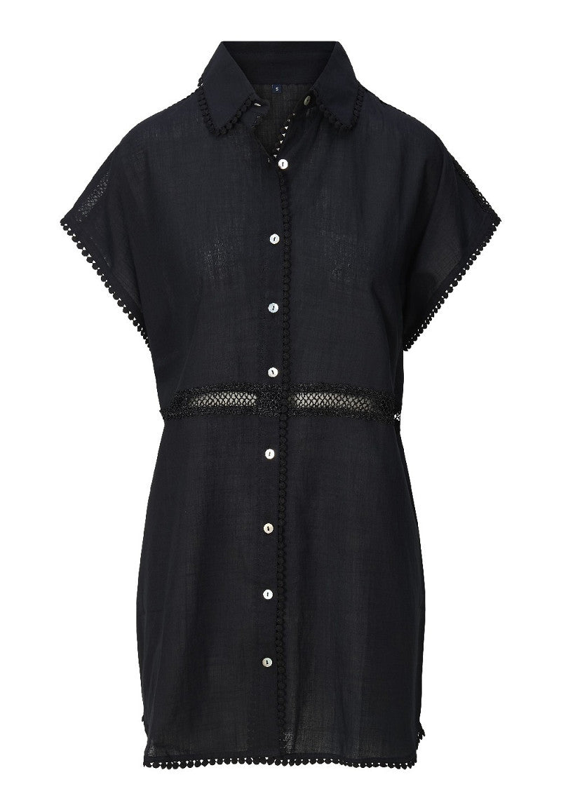 De tuniek valt boven de knie en heeft een los, recht silhouet dat soepel om het lichaam valt. De verfijnde broderie details geven een vrouwelijke en elegante touch, terwijl het ademende katoen zorgt voor optimaal draagcomfort tijdens warme dagen.