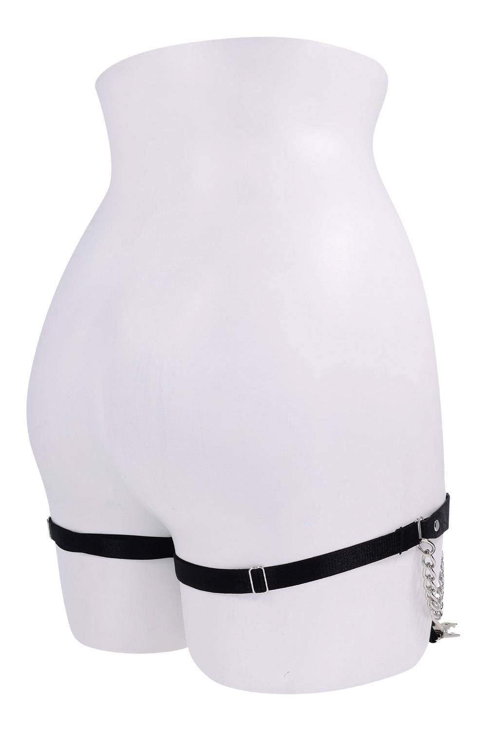 De sierlijke, gedrapeerde kettingen vallen als een speelse waterval langs je dijen en zorgen voor een subtiel tintelend accent. Perfect om je outfit nét dat beetje extra spanning en verleiding te geven – van een stijlvolle avondlook tot intieme momenten achter gesloten deuren.